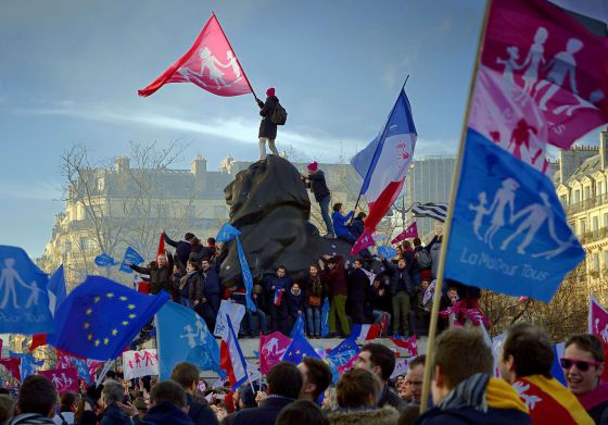 París ” El movimiento nacido en Francia en oposición a la ley que autoriza el matrimonio a «parejas» del mismo sexo se ha anotado una doble victoria. Contradiciendo pronósticos de los medios y la clase política que apostaban por un agotamiento de La Manif pour Tous, cerca de 500 mil franceses se volcaron nuevamente a las calles en París el día 2 de febrero, para oponerse a la política antifamilar del gobierno Hollande.